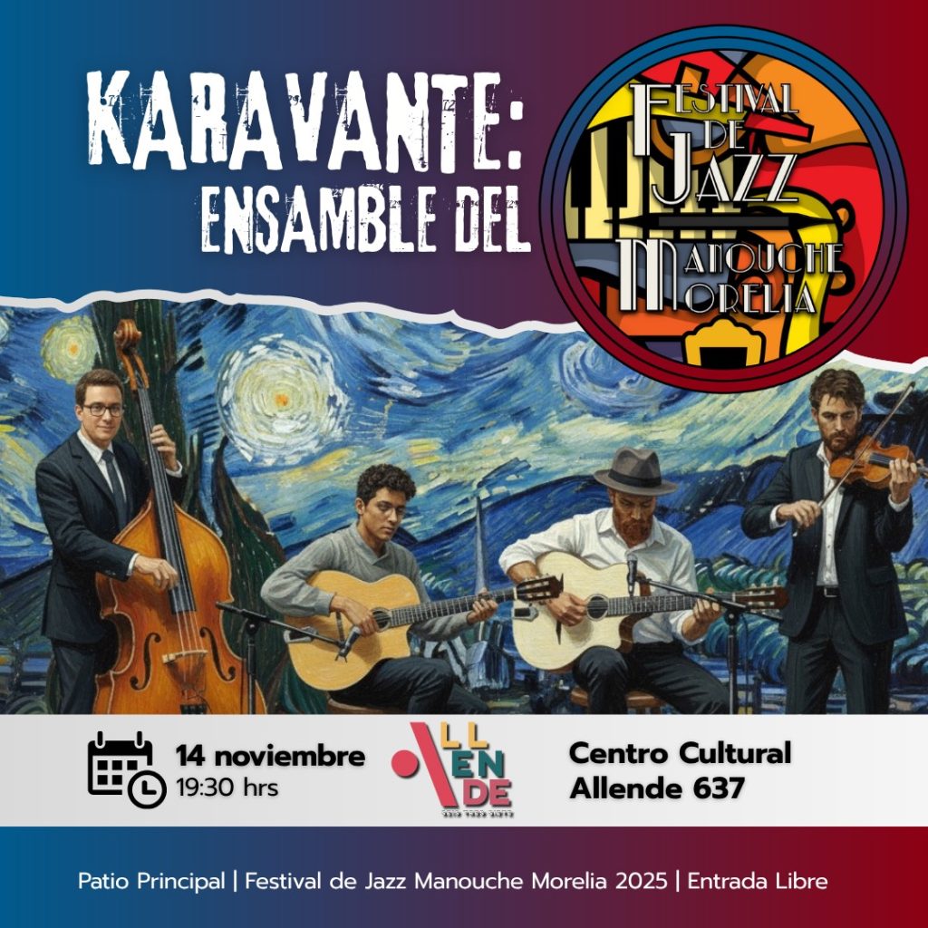 Ven a pasar un un momento vibrante con el ensamble Karavante, fundado en 2021 como iniciativa de la comunidad de este festival que celebra la riqueza y diversidad de la música jazz manouche, reuniendo a talentosos músicos, locales y nacionales, que interpretan con maestría este estilo único y. sobre todo, ofreciendo al público una experiencia musical inolvidable.