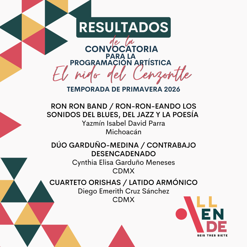 El Centro Cultural Allende 637 informa los resultados de la convocatoria de primavera para la programación artística “El nido del Cenzontle” en la que han participado proyectos muy interesantes y desbordantes de talento.